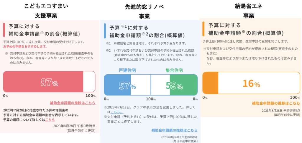 関連のうち、キッチンリフォームや浴室リフォーム・トイレリフォームなどに活用できる「こどもエコ住まい事業」補助金がいよいよ予算の90%と上限に達する進捗になってきました。