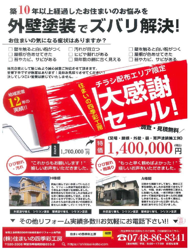 またご自宅のエアコン掃除等がございましたら甲賀市にある私ども”住まいの四季彩工房”までご連絡下さい!